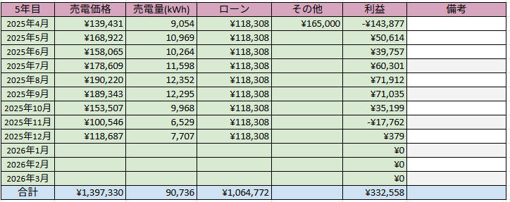 太陽光投資 低圧太陽光発電 発電実績 2025年12月 seama7@gmail.com 2026年1月11日 / 2026年1月11日 2020年と2021年から稼働している2基の2025年12月の発電実績です。昨年8月に銅線盗まれて復活してからは順調に発電しています。防犯対策が効いてます。2基目合計で215,984円の売上。例年並みってところですね。 低圧太陽光発電 発電実績 2025年11月低圧太陽光発電 発電実績 2025年11月... 太陽光発電所1基目太陽光発電所1基目... 太陽光発電所2基目太陽光発電所2基目...